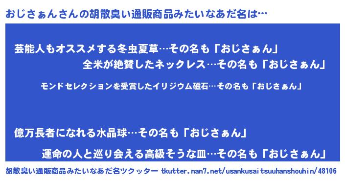 | 男性向けラノベタイトル風あだ名 | 『ノーゲーム・ノーオジサァン』 |