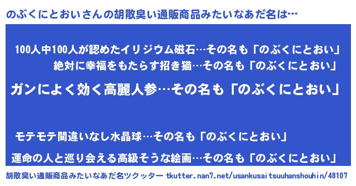 | 男性向けラノベタイトル風あだ名 | 『ノブクニトオイスレイヤー』 |