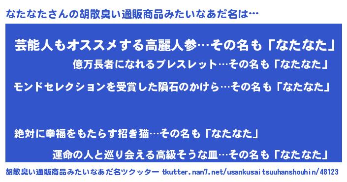 | 意味不明あだ名 | 『ニラ科なたなた属』『自称なたなた』 |