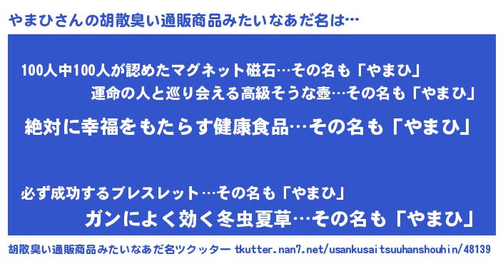 | ヒーロー風カッコイイあだ名 | 『ネオヤマヒ』『正義の使者やまひ』 |