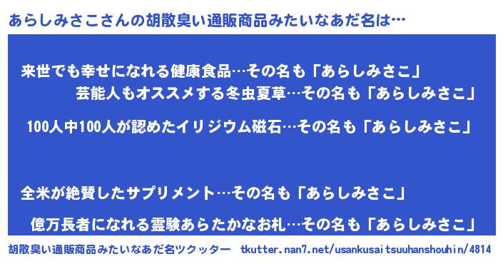 | ヘコむあだ名 | 『あらしみさこ(爆)』『あらにゅー』 |