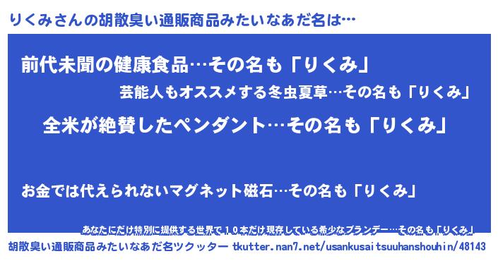 | 意味不明あだ名 | 『とにかく怪しいりくみ』『自称りくみ』 |