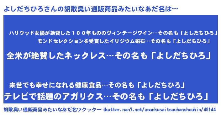 | 意味不明あだ名 | 『とにかく怪しいよしだちひろ』 |
