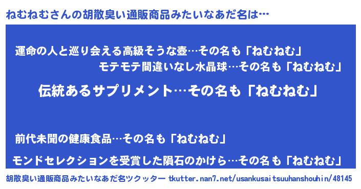 | 意味不明あだ名 | 『とにかく怪しいねむねむ』 |