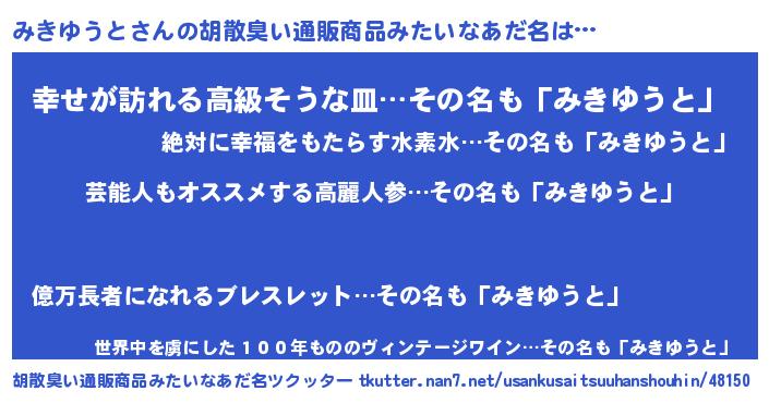 | 恥ずかしいあだ名 | 『ミキユウトデラックス』『みきっちょ』 |