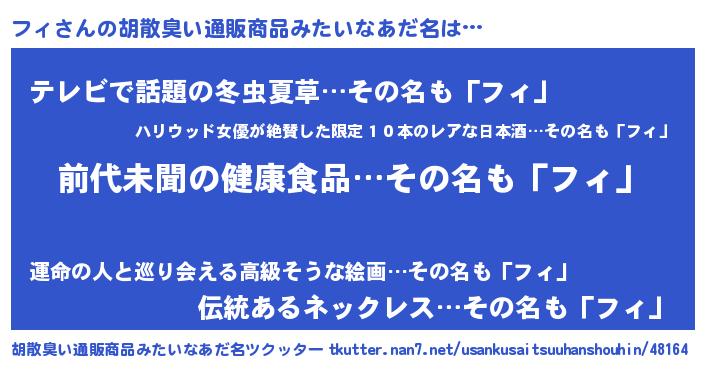 | ヘコむあだ名 | 『フィ(笑)』『フィっちょ』 |