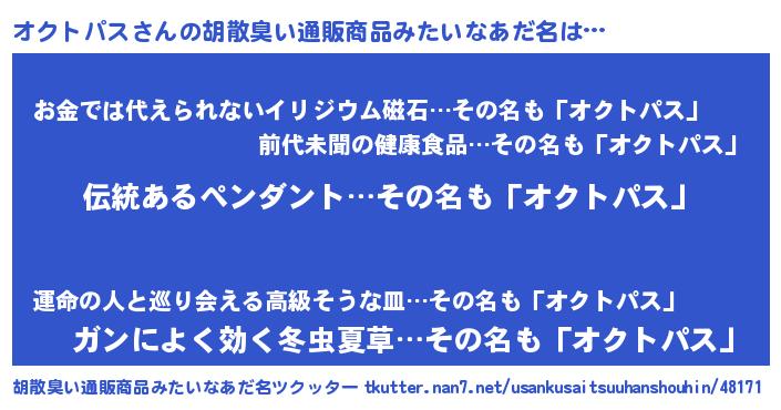 | 意味不明あだ名 | 『とにかく怪しいオクトパス』 |