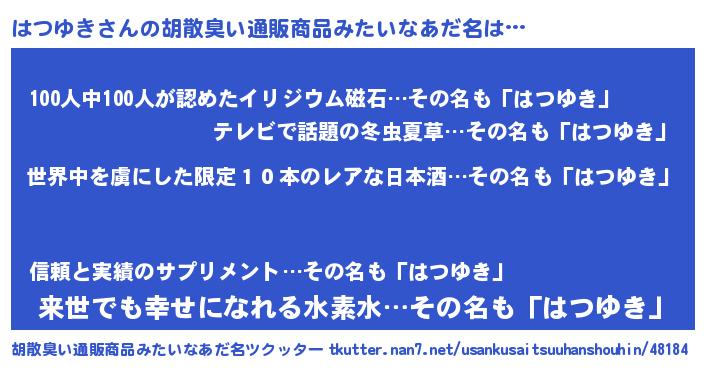 | ヘコむあだ名 | 『はつゆき(爆)』『はつぷりん』 |