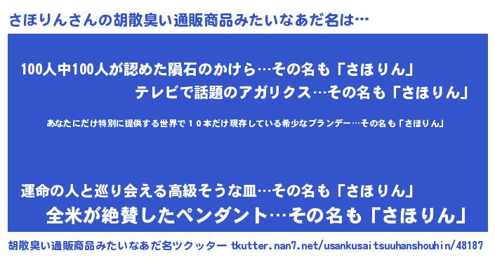 | 意味不明あだ名 | 『住所不定無職さほりん(86歳)』 |