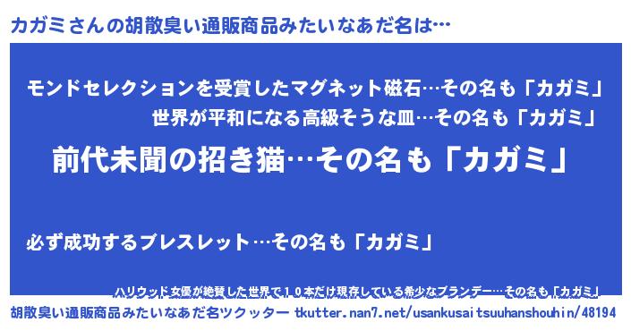 | ヒーロー風カッコイイあだ名 | 『ネオカガミ』『天空の使者カガミ』 |