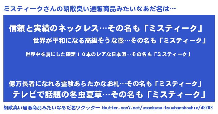 | ことわざ | 壁に耳あり障子に目あり『ミスティークに耳ありミスティークに目あり』 |