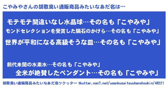 | 意味不明あだ名 | 『こやみやフォーエバー』 |