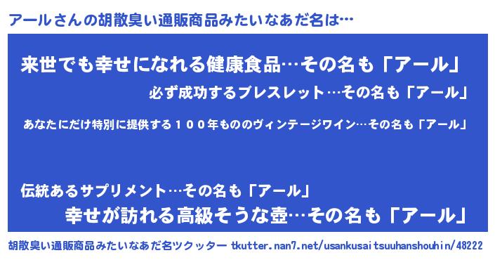 | 意味不明あだ名 | 『住所不定無職アール(13歳)』 |