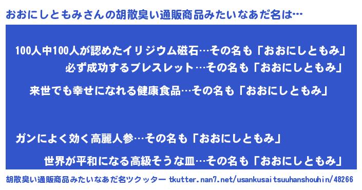 | ヒーロー風カッコイイあだ名 | 『ネオオオニシトモミ』 |