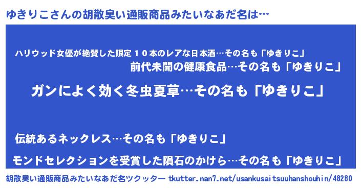 | 意味不明あだ名 | 『自称ゆきりこ』『ヨモギ科ゆきりこ属』 |