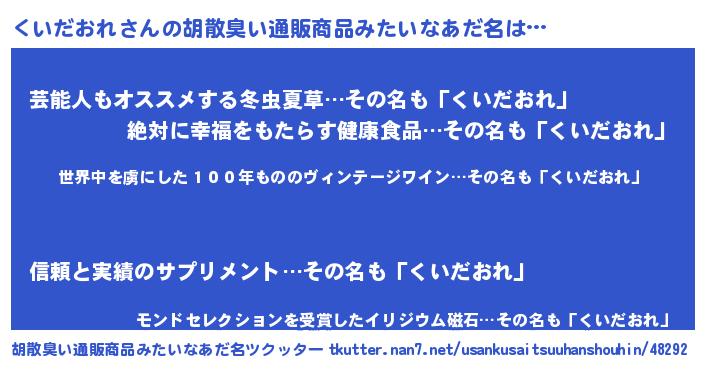 | ヘコむあだ名 | 『くいだおれ(笑)』『くいっちょ』 |