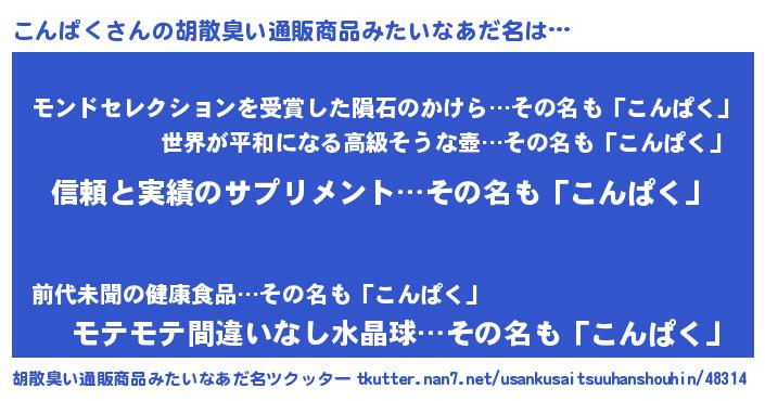 | 意味不明あだ名 | 『とにかく怪しいこんぱく』 |