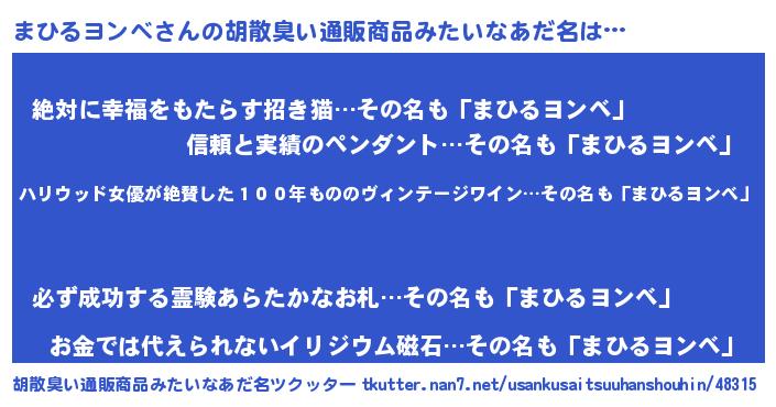 | ヘコむあだ名 | 『まひるヨンベ(笑)』『まひお』 |