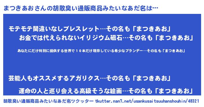 | 意味不明あだ名 | 『住所不定無職まつきあお(74歳)』 |