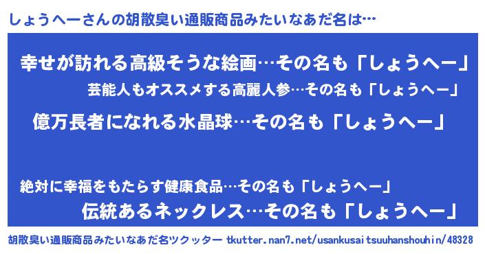 | 意味不明あだ名 | 『ペロリンしょうへー』『自称しょうへー』 |