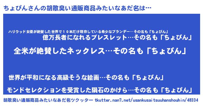 | 意味不明あだ名 | 『とにかく怪しいちょぴん』 |