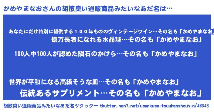 | ヒーロー風カッコイイあだ名 | 『正義の使者かめやまなお』 |