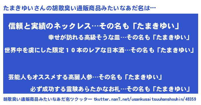 | 意味不明あだ名 | 『住所不定無職たまきゆい(40歳)』 |