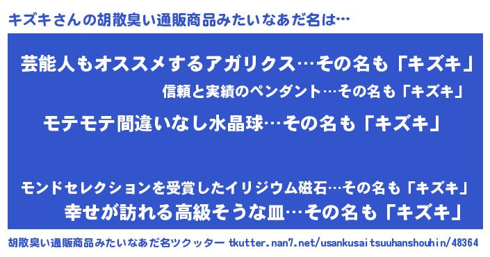| ヘコむあだ名 | 『キズにゅー』『つくし』『キズを』 |