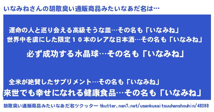 | ヘコむあだ名 | 『いなふぇ~』『酢こんぶ』 |