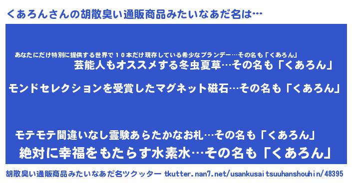 | 恥ずかしいあだ名 | 『ボンバーヘッドくあ』『くあちん』 |