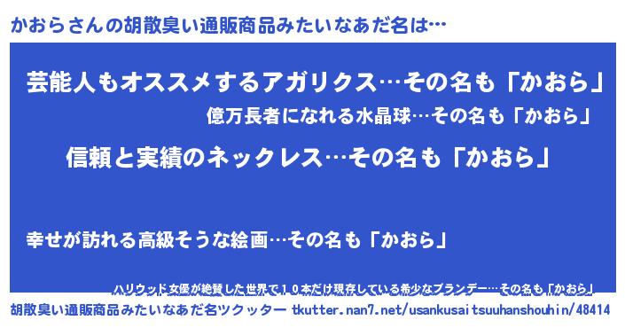 | 女子向けラノベタイトル風あだ名 | 『かおらは平凡を望む』 |