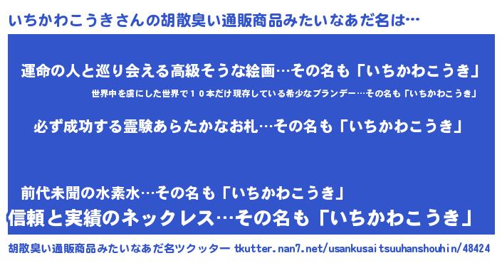 | 男性向けラノベタイトル風あだ名 | 『いちかわこうきの憂鬱』 |