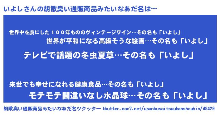 | 意味不明あだ名 | 『自称いよし』『住所不定無職いよし(7歳)』 |