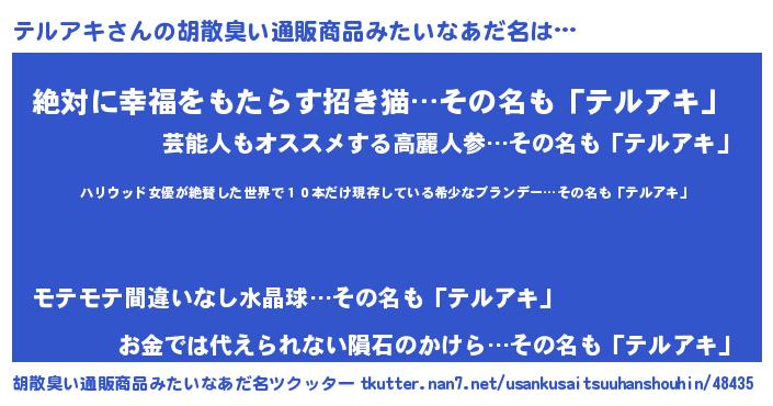 | 料理風あだ名 | 『テルアキのカルパッチョ風』 |