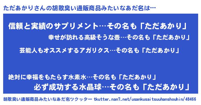 | 意味不明あだ名 | 『自称ただあかり』『ペロリンただあかり』 |