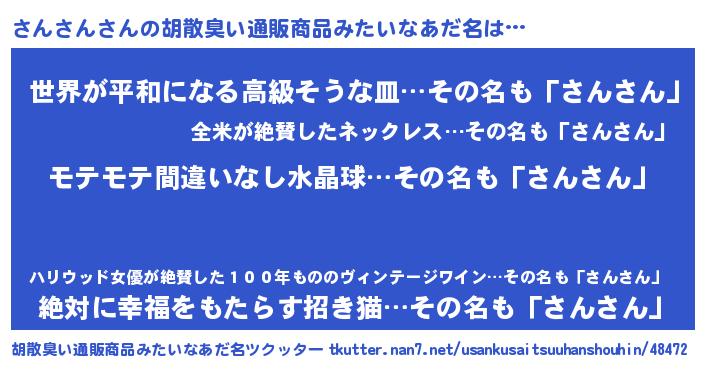 | 男性向けラノベタイトル風あだ名 | 『さんさんの憂鬱』 |