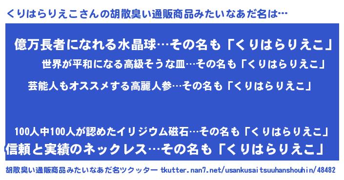 | 意味不明あだ名 | 『自称くりはらりえこ』 |