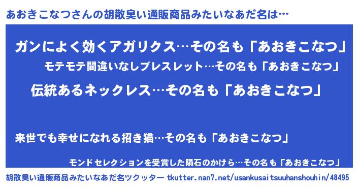 | ポケモン風あだ名 | 『アオキング』『ヒアオキコナツ』 |