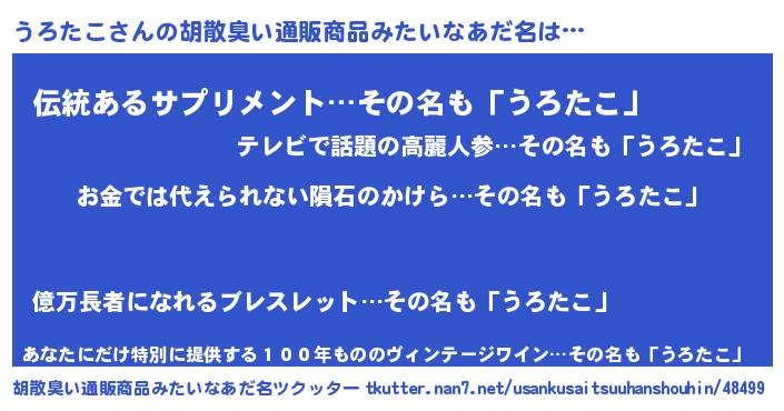 | 欧米人風あだ名 | 『ダニエルうろたこ』『ウサインうろたこ』 |