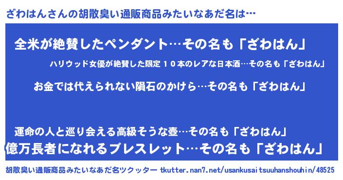 | ピコ太郎風あだ名 | 『ザザ太郎』『ザワ六郎』『ザコ次郎』 |