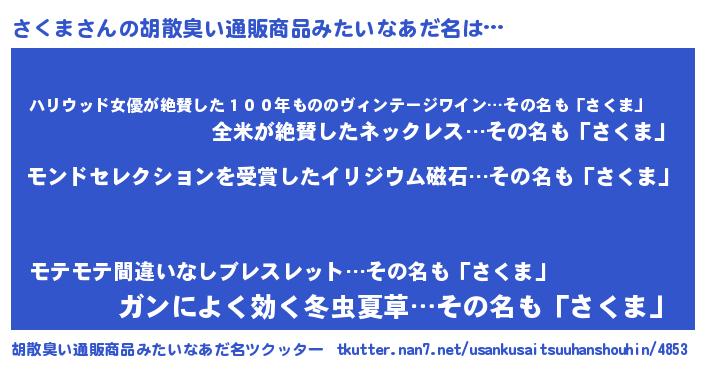| 欧米人風あだ名 | 『ダニエルさくま』『トリンドルさくま』 |