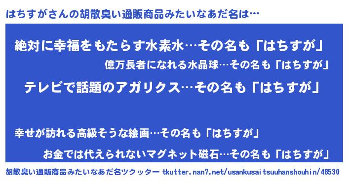 | 恥ずかしいあだ名 | 『ハチスガデラックス』『はちちん』 |