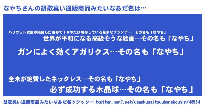 なやちさんの胡散臭い通販商品みたいなあだ名をツクッター!