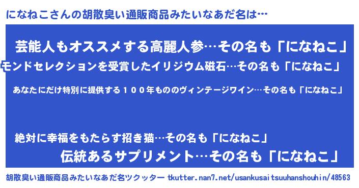 | 意味不明あだ名 | 『住所不定無職になねこ(7歳)』 |