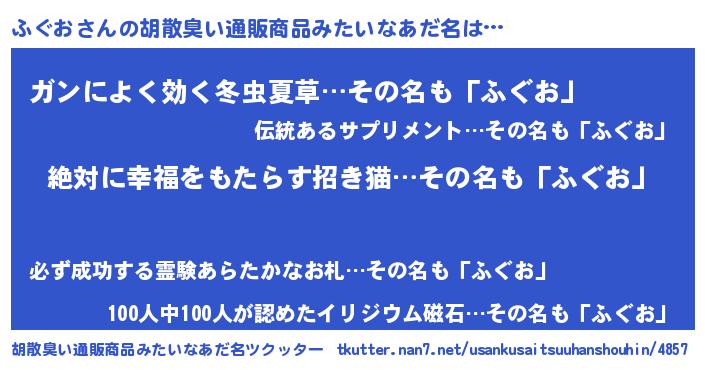 | 意味不明あだ名 | 『永久保存ふぐお』『自称ふぐお』 |