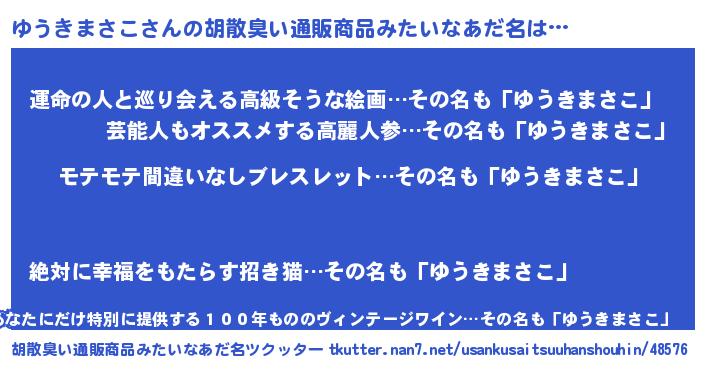 ゆうきまさこさんの胡散臭い通販商品みたいなあだ名をツクッター!