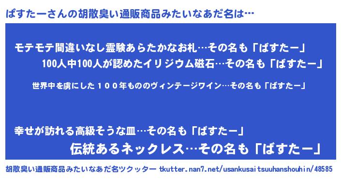 | ヘコむあだ名 | 『ばすふぇ~』『ばすっちょ』 |