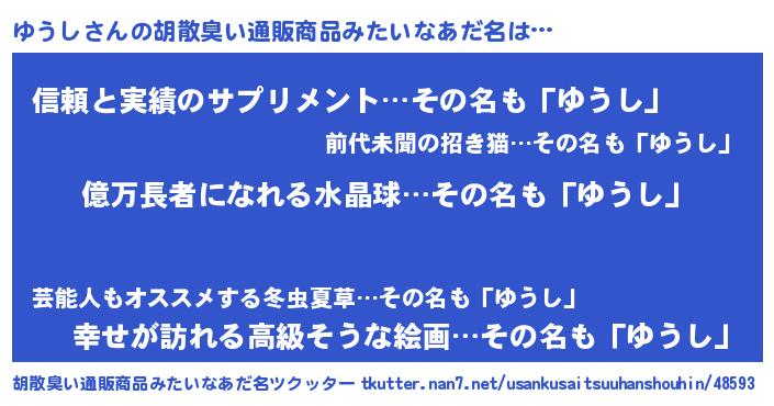 | ヒーロー風カッコイイあだ名 | 『スーパーユウシ』『銀牙騎士ユウ』 |