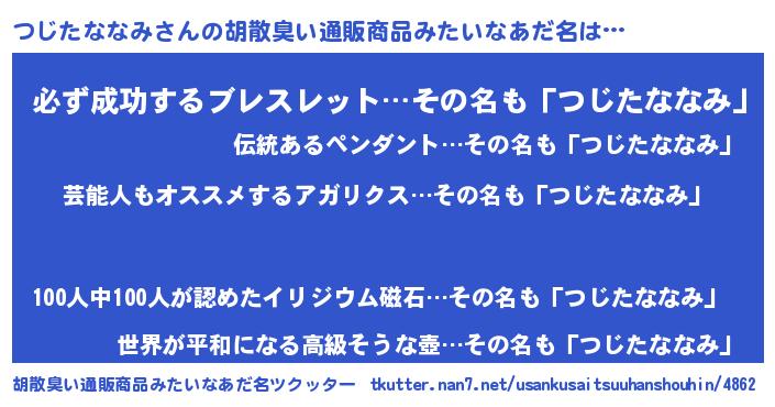 | 意味不明あだ名 | 『自称つじたななみ』 |