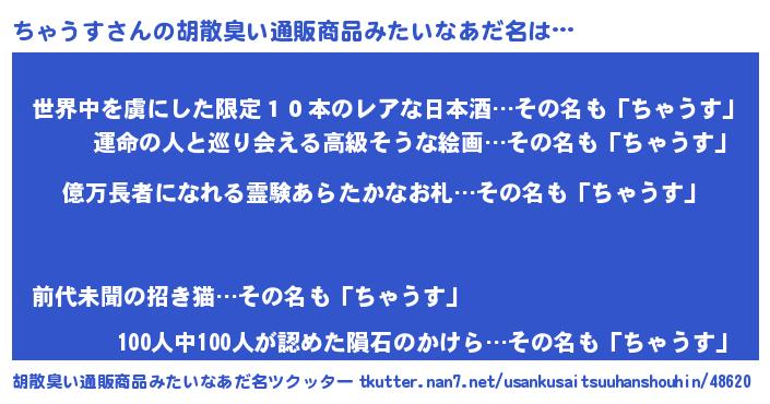| 欧米人風あだ名 | 『マイケルちゃうす』『ダニエルちゃうす』 |